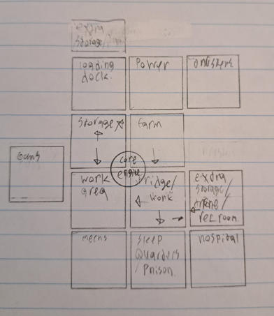 here is the layout of the ship. Everything is set up so that the required inputs for each room are in one of its neighboring rooms.